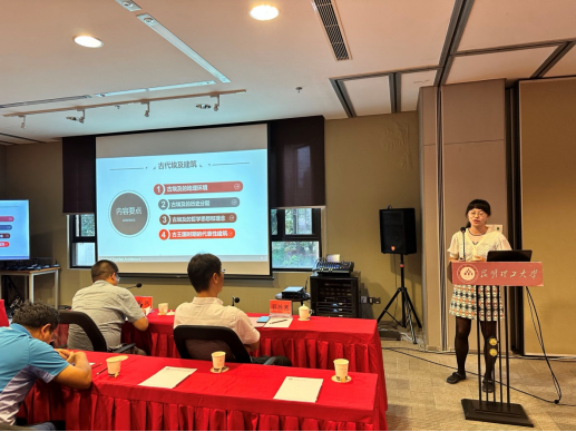 张悦老师用双语给青年教师演示了《古代埃及建筑》课程的讲解。张老师提出把课堂归还给学生、分组教学、课堂设置投票环节等教学方法。