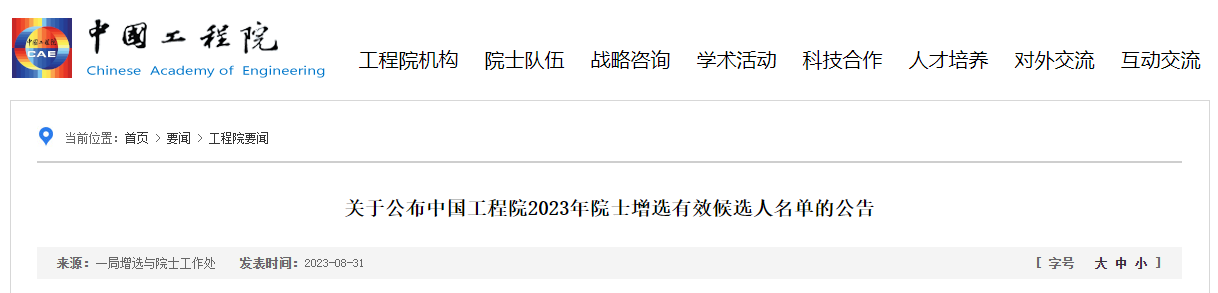 8月31日中国科PG赏金女王、中国工程院网站发布《关于公布2023年中国科PG赏金女王院士增选有效候选人名单的公告》《关于公布中国工程院2023年院士增选有效候选人名单的公告》